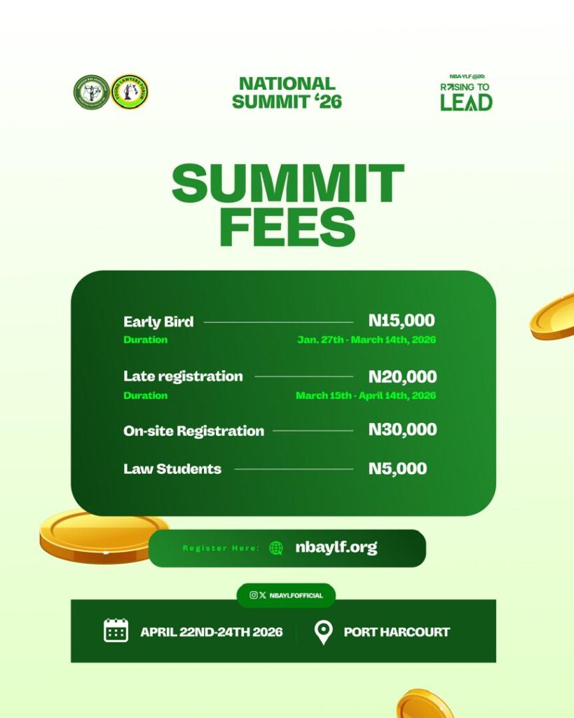 This Summit will convene young lawyers across Nigeria and in diaspora, senior lawyers, policymakers, innovators and change-makers to engage ideas, build capacity, and chart the future of the profession.